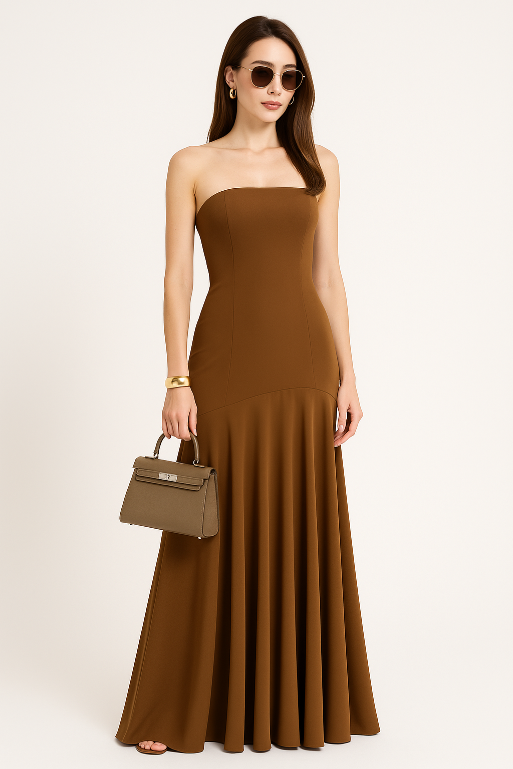 Elevate your elegance with the Chest Island Strapless Maxi Dress, a timeless piece crafted for effortless sophistication. Featuring a sleek strapless neckline and a fitted bodice that flows into a gracefully flared hem, this dress beautifully accentuates your silhouette while offering comfort and ease of movement.